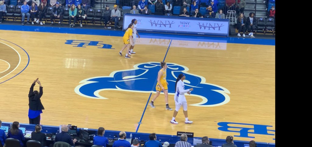 Buffalo held another team under the 59 point mark. Coach Felisha Legette-Jack and Theresa Onwuka had big smiles on their face when recognized for that accomplishment.